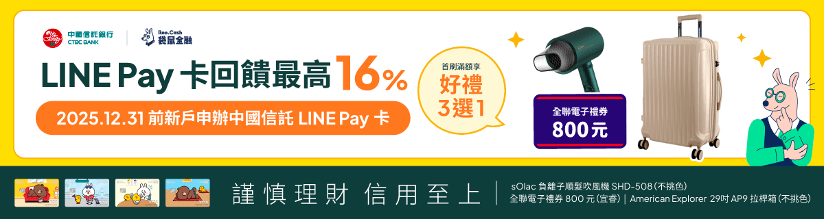 💚 中信 LINE Pay 卡新戶禮(10/1~12/31)