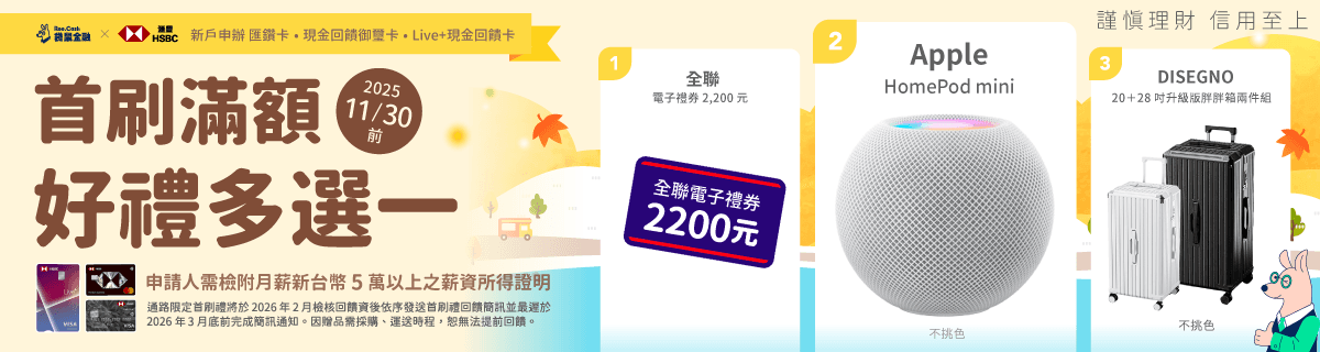 💚 滙豐信用卡新戶禮(11/1~11/30)