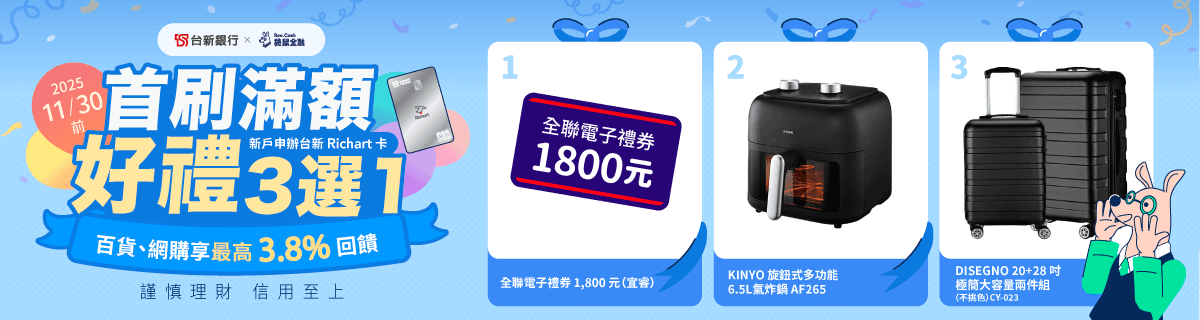 💖 台新 Richart 卡新戶禮(11/1~11/30)