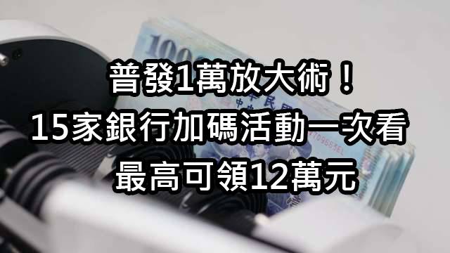 中央政府推出「全民普發現金1萬元」,將在 2025 年 11 月 5 日起開放登記、最快 11 月 17 日即可入帳或 ATM 領取。除了這筆全民紅包之外,全台共有超過 15 家銀行祭出加碼優惠、抽獎活動、現金回饋,最高回饋金額可達 12 萬元!從 iPhone 17、沖繩雙人來回機票到 10 萬現金抽獎,全都讓你的一萬元「再放大」。