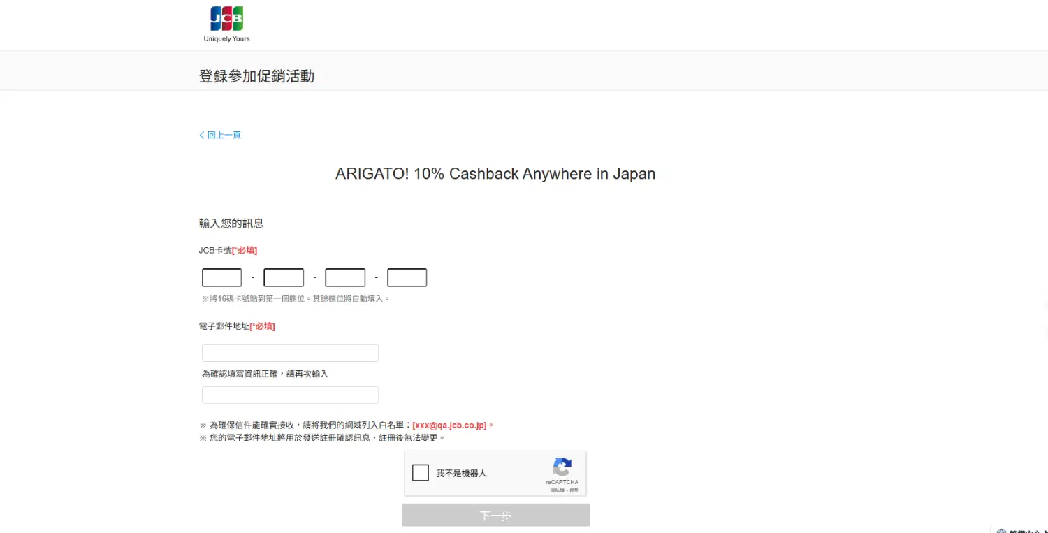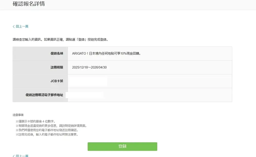 小撇步:如果您有多張 JCB 卡,建議分開註冊,每張卡都有獨立的回饋名額。